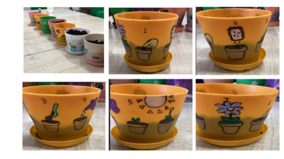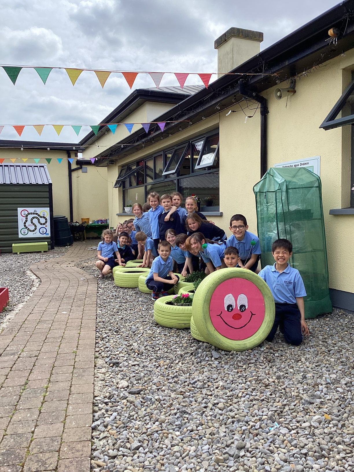 Pupils from Room 22 joined up with their 3rd class friends from Room 14 to plant flowers earlier this term. The 6th class pupils designed these lovely procedural flowerpots to support their presentation on ‘how to plant a flower’ as Gaeilge! Maith sibh!