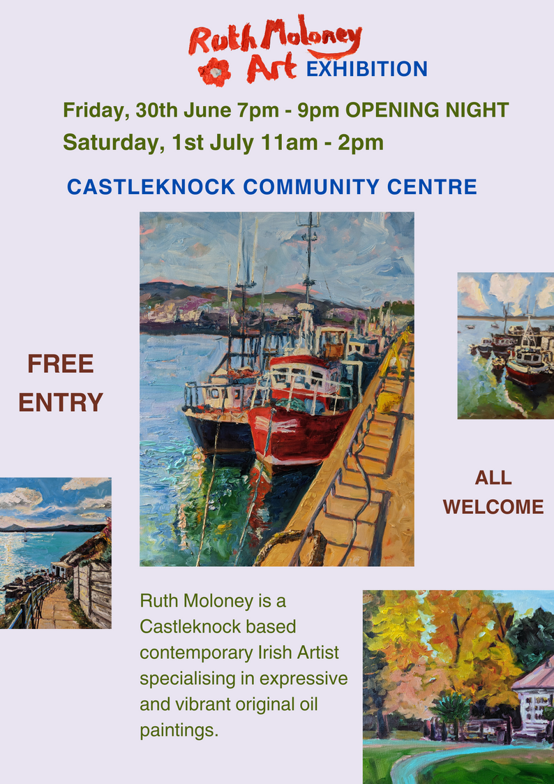 Castleknock Community Centre is delighted to host local artist Ruth Moloney to display her incredible art work on Friday 30th June, 7pm-9pm